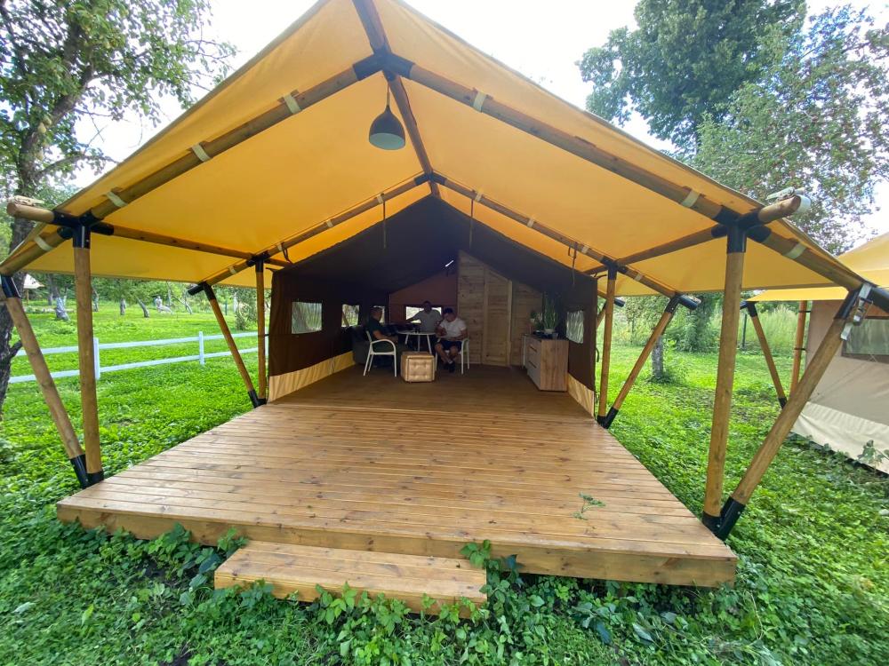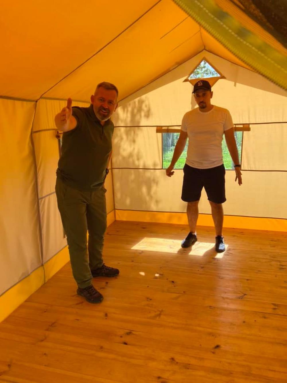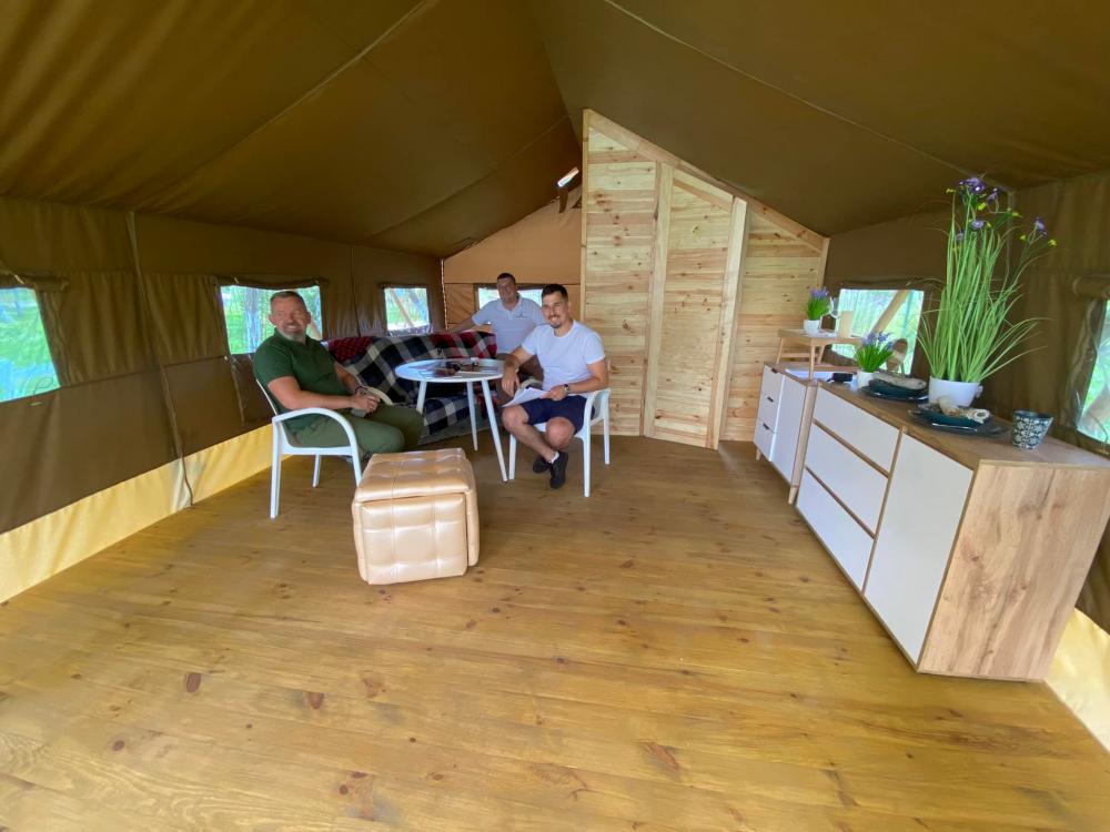 "Кілька років тому в двох чоловіків з’явилася ідея, як зробити відпочинок на природі зручним та комфортним. Вони першими в Україні запустили виробництво гламурних кемпінгів – глемпів, де є всі зручності, меблі, свіжа постільна білизна, санвузол, кухня, WI-FI та кондиціонери", - йдеться у повідомленні.
