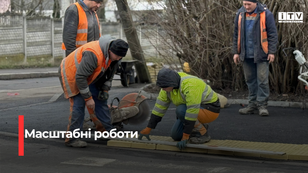 Також встановлюється тактильна плитка. Цей елемент є обов'язковим стандартом доступності та допомагає людям з вадами зору безпечно орієнтуватися на вулиці та ідентифікувати початок пішохідного переходу.