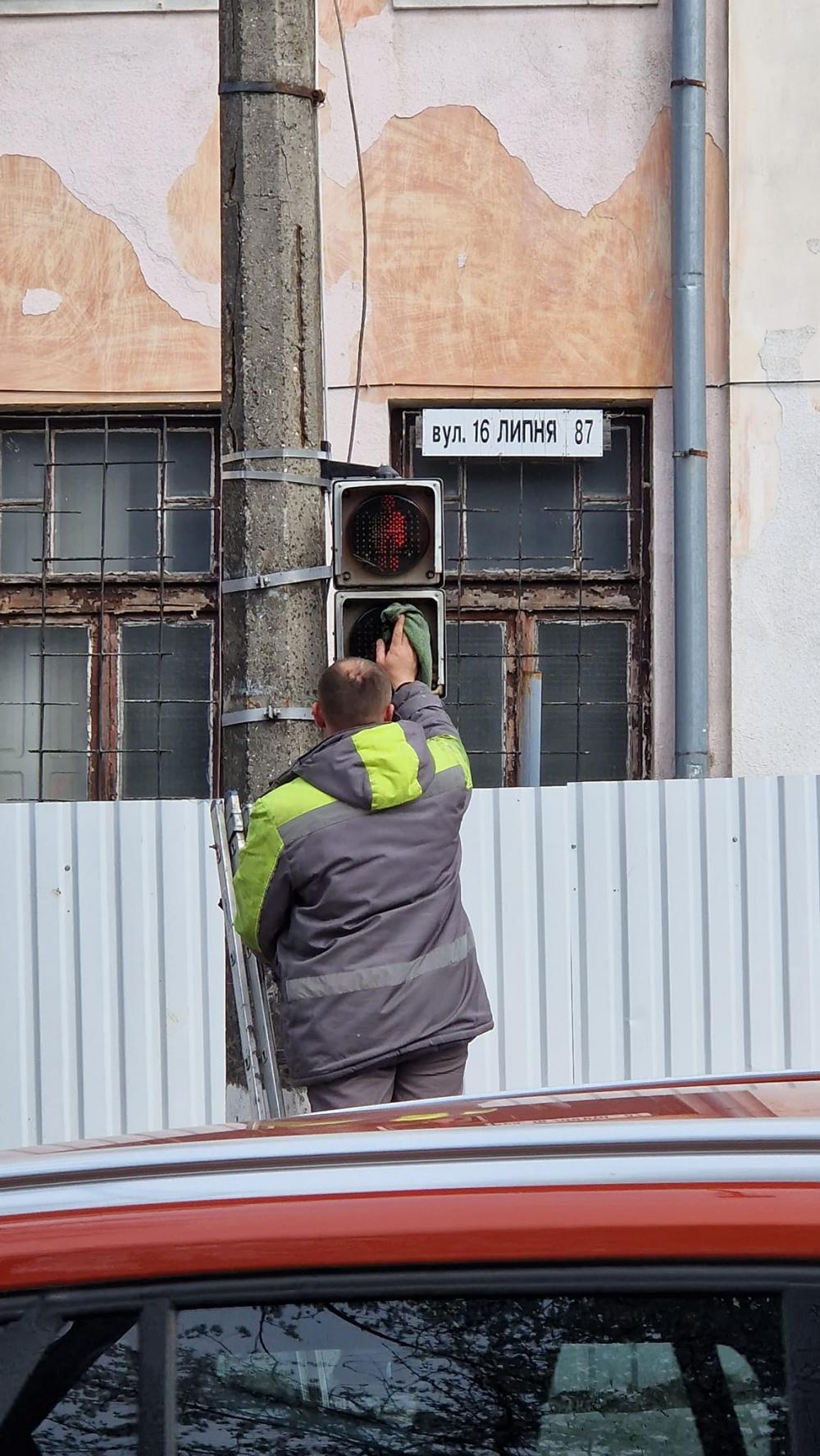 На вул. Набережна-Пр.Миру та Набережна-Сагайдачного здійснили миття світлофоних об'єктів.