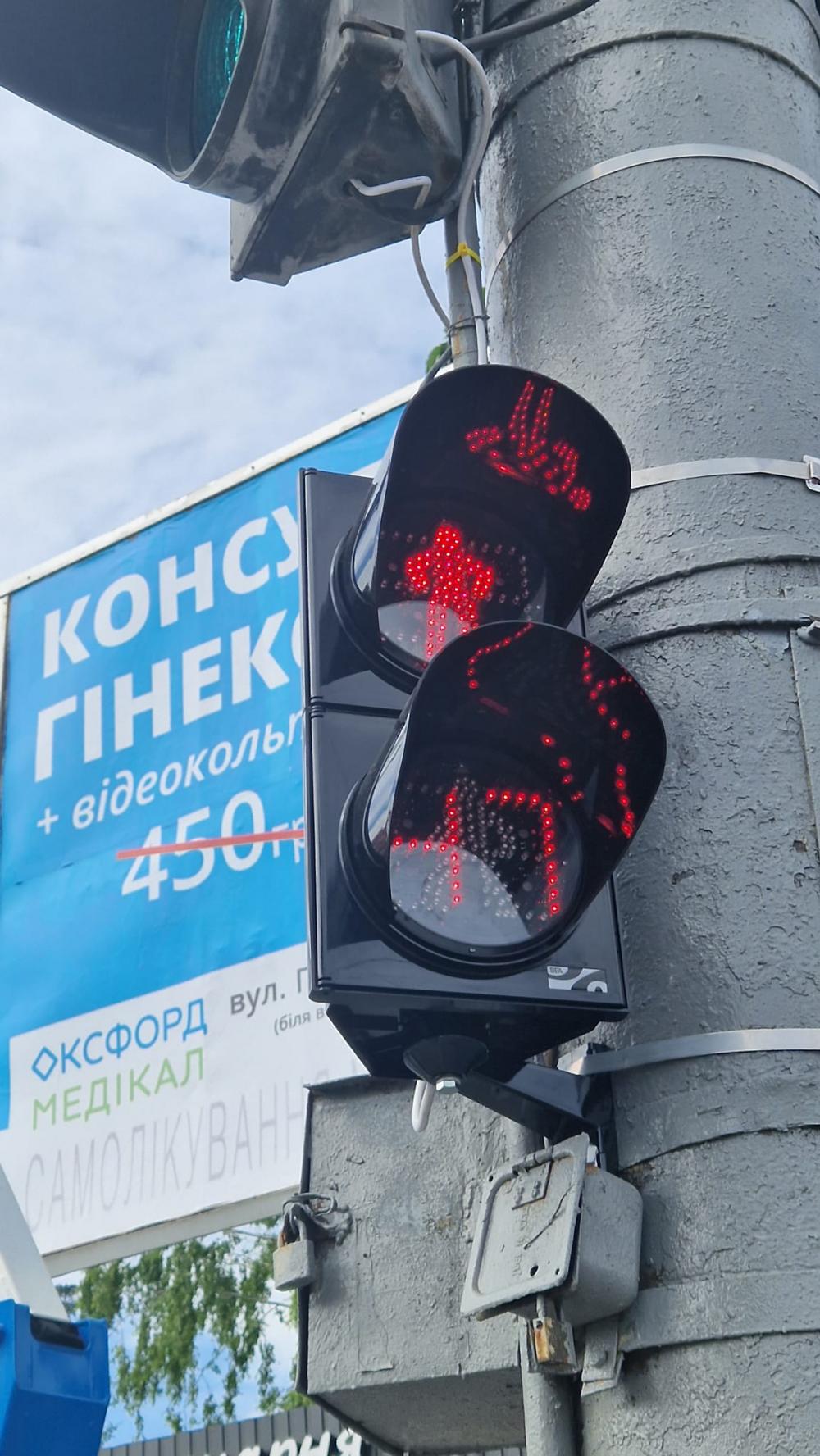 Там поставили 2 нові транспортні діодні світлофори з відліком часу та 2 пішохідних.