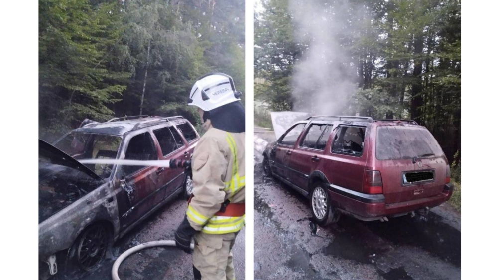 Прибувши за вказаною адресою вогнеборці встановили, що вогнем охоплено передню частину легкового автомобіля марки Volkswagen Golf III.