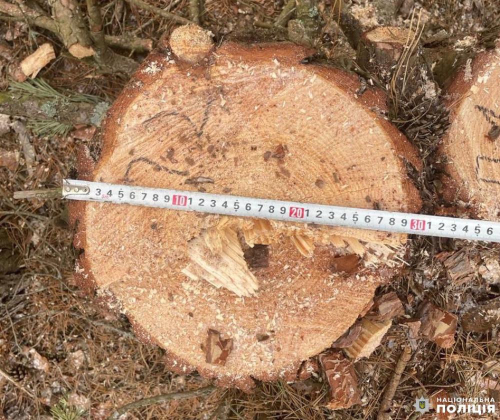 Встановили, що зрізану деревину породи сосна невідомі перевезли на пилораму, що розташована неподалік та належить 26-річному жителю села Воронки. Однак чоловік від пояснень відмовився та не надав жодних дозвільних документів.