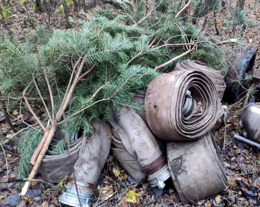 Так, у лісовому масиві поблизу села Мульчиці правоохоронці виявили мотопомпу та майже 10 шлангів, які були прикриті гіллям.