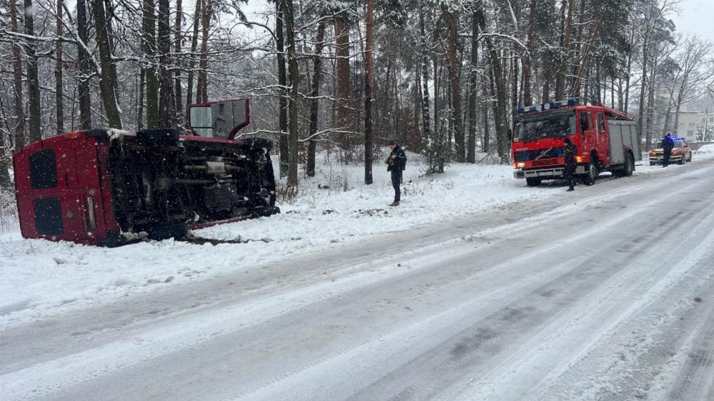 На півночі Рівненщини внаслідок ДТП на узбіччя перекинувся мікроавтобус.