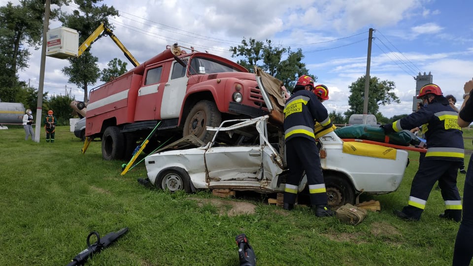 У цей час на полігоні представники Рівнобленерго, газової служби, ДСНС та патрульні проходять спеціальне навчання. Про це з місця події повідомляє кореспондент телеканалу "Ритм". Учасники відпрацьовують алгоритм дій під час порятунку із завалу потерпілого. Згодом пройде відпрацювання під час ліквідації пожежі на бензозаправці та порятунок потерпілого із каналізації, колодязя або криниці. Також будуть відпрацьовути опертивні дії й під час ДТП. Усі деталі згодом. Світлина від ТРК "Ритм". Світлина від ТРК "Ритм". Світлина від ТРК "Ритм". Світлина від ТРК "Ритм".