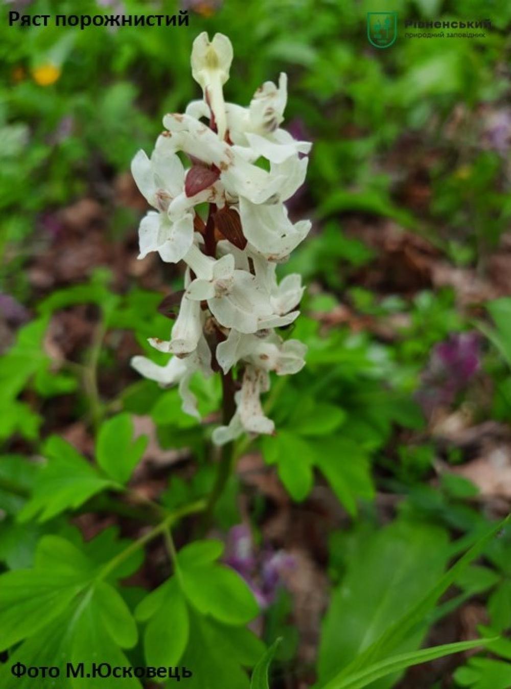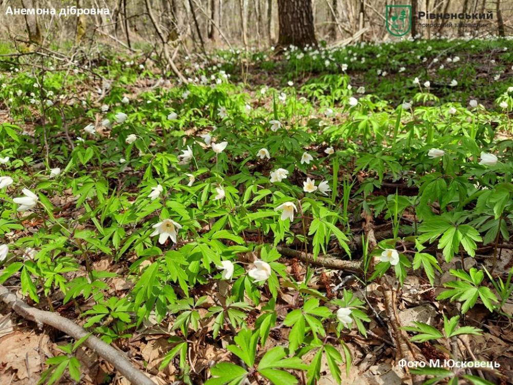 Серед ранньоквітучих рослин — анемона дібровна, зірочки жовті, ряст ущільнений, сон розкритий, пшінка весняна, цибуля ведмежа та інші.