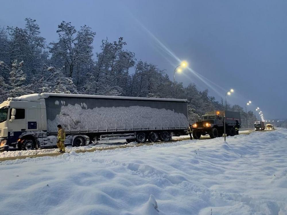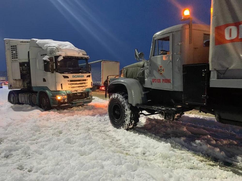За допомогою важкої інженерної техніки рятувальники відбуксирували одинадцять вантажівок.