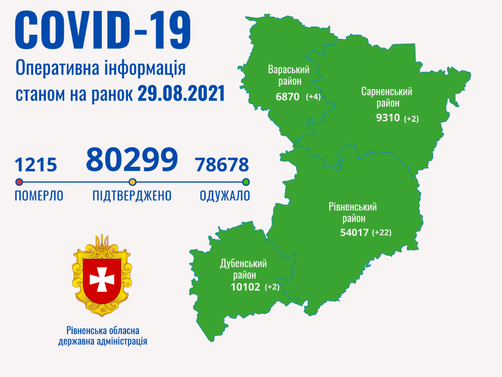 Таким чином в Рівненській області наразі маємо 80 299 випадків захворювання на коронавірусну хворобу.