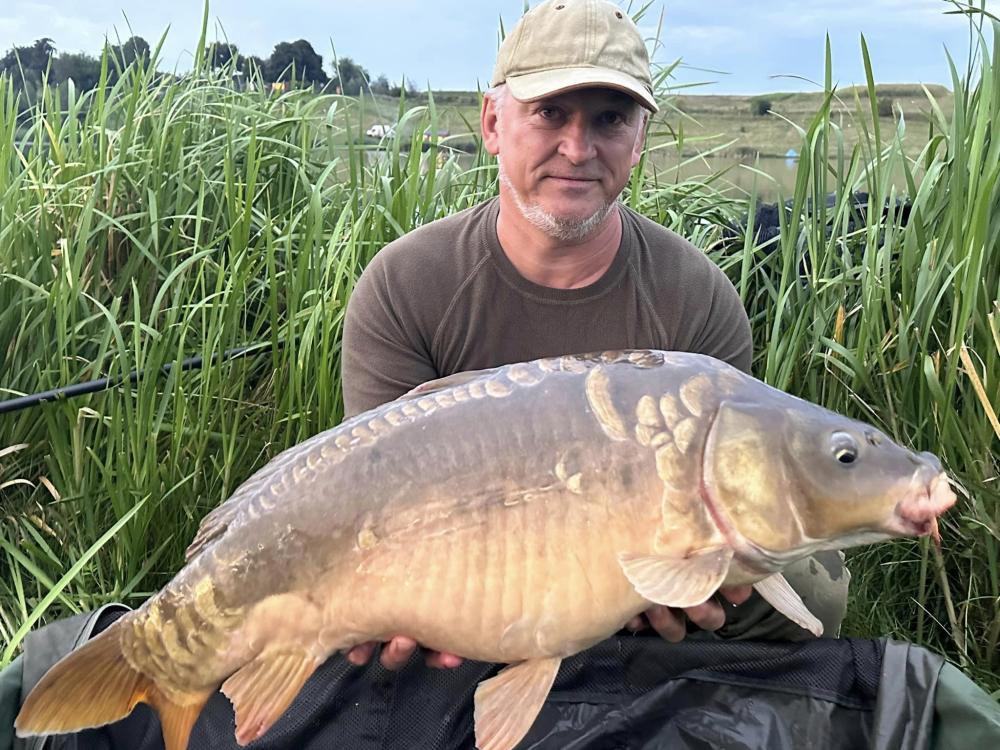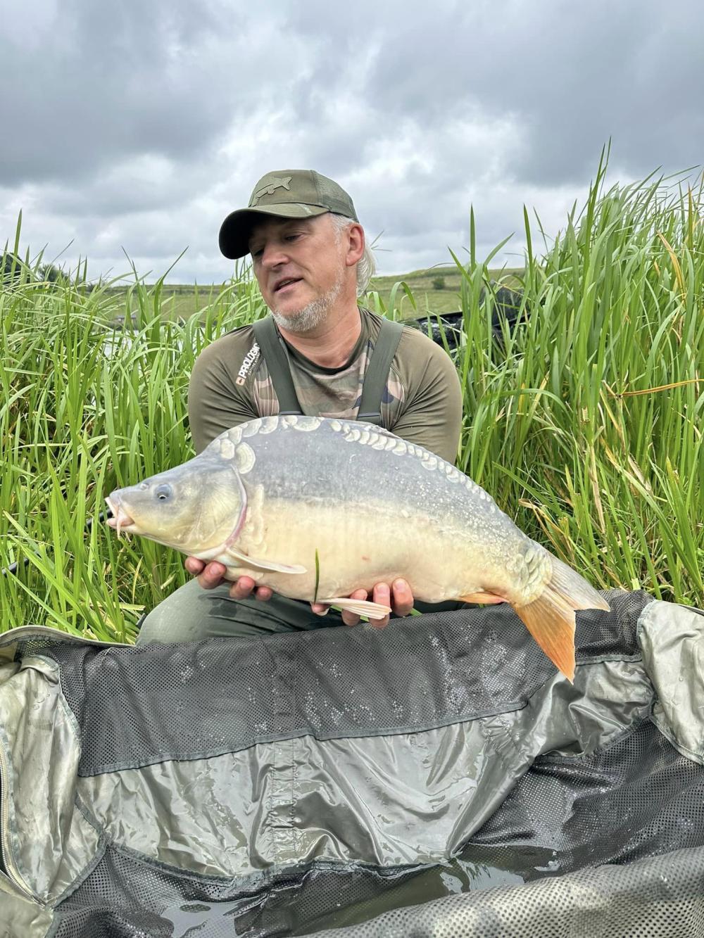 Спіймав чоловік карпів на водоймі Острів, що на Дубенщині.