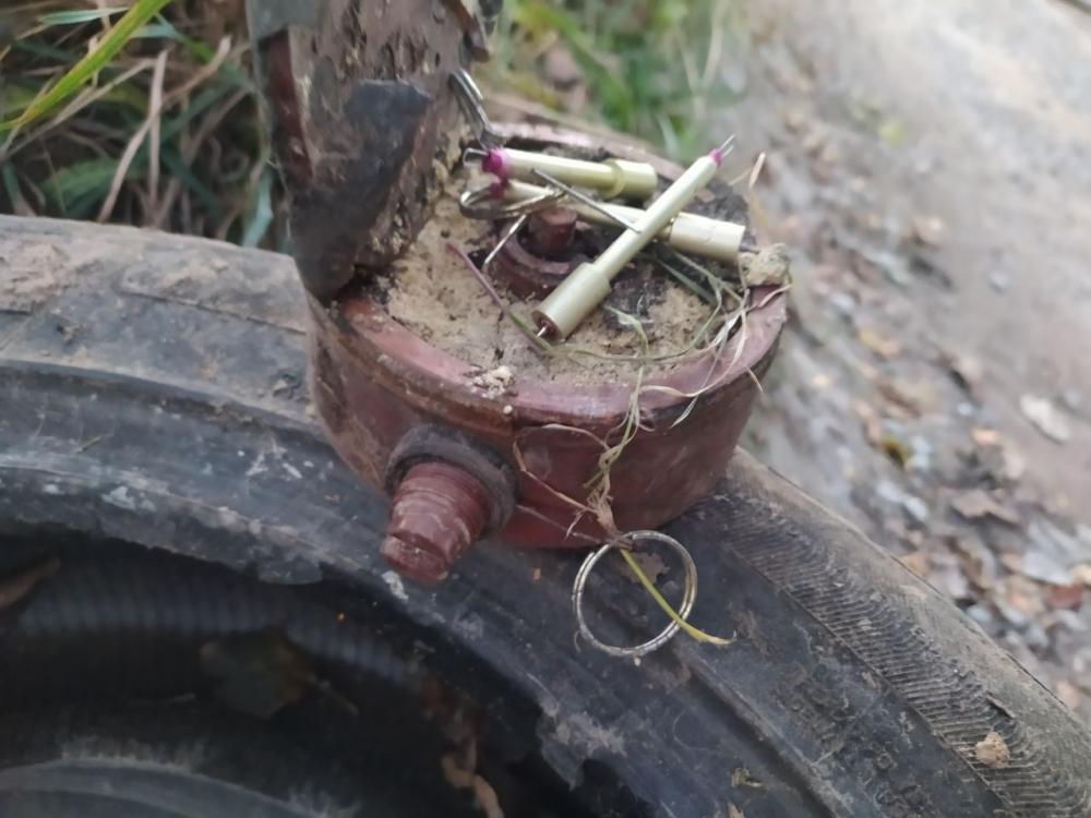 Поліцейські за результатами огляду виявили у поліетиленовому пакеті на узбіччі дев’ять навчальних протипіхотних мін, які вибухової речовини та засобів підриву не містили.
