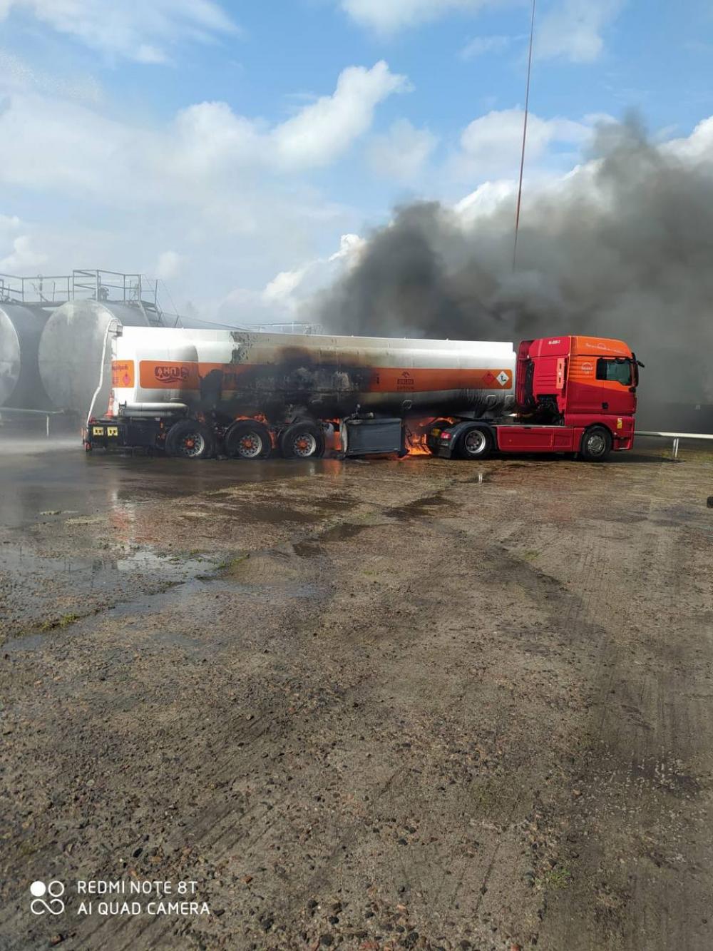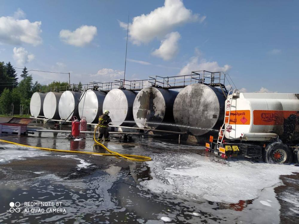 Прибувши на місце події рятувальники встановили, що горять колеса цистерни-напівпричіпа (паливозаправника) з ємністю 28 т пального, на відстані приблизно півтора метри від семи резервуарів з пальним. Кожен резервуар містськість 20 т.