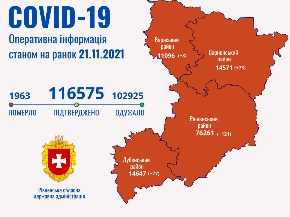 цієї доби в області від ускладнень, спричинених covid-19, померли семеро. Це 61-річний житель м. Здолбунів, 49-річна жителька с. Здовбиця, 54-річний житель с. Цурків, 67- річна жителька села Синів Рівненського району, 71-річна жителька м. Дубно, 83-річна жителька с. Солонів Дубенського району, 70-річна жителька смт Рокитне.