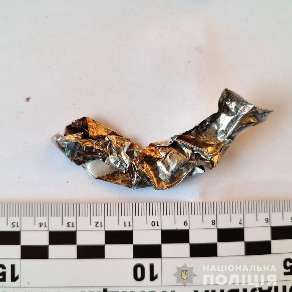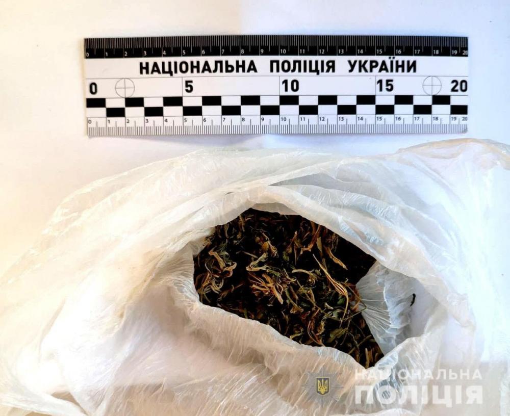 Під час обшуку вилучено пакетик та фольгу із порошком, 20 грамів марихуани та пристрій для вживання наркотиків.