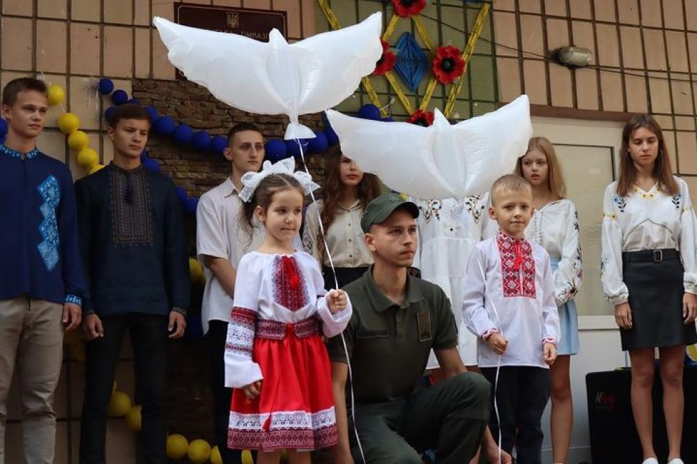 У День знань ліцеїсти й вчителі вшанували всіх українських героїв. Гвардієць Ілля спільно з дітьми загиблих військовослужбовців НГУ і ЗСУ, Софійкою Бахтін і Анатолієм Мамчуром випустили в небо голубів – символічний лист-подяка всім загиблим захисникам України.