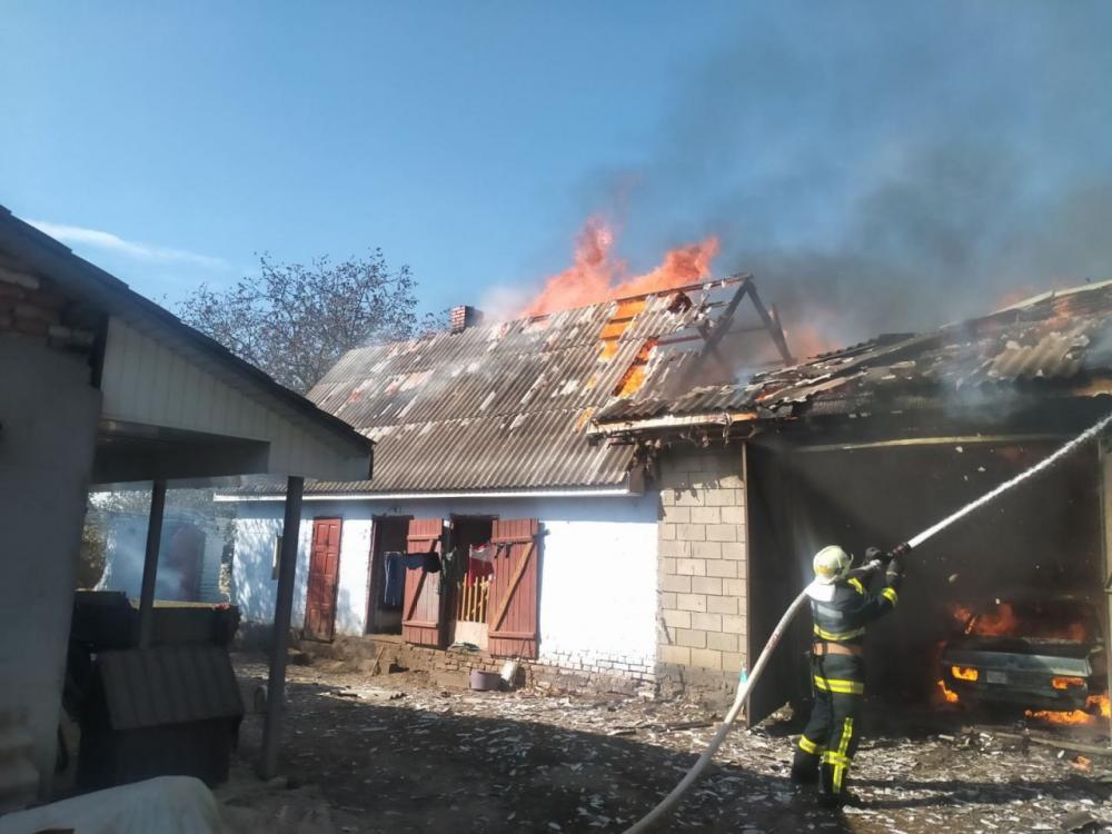 Внаслідок цього вогнем знищено покриття, перекриття цегляної господарської будівлі розміром 16х7 м та легковий автомобіль ВАЗ-21099.