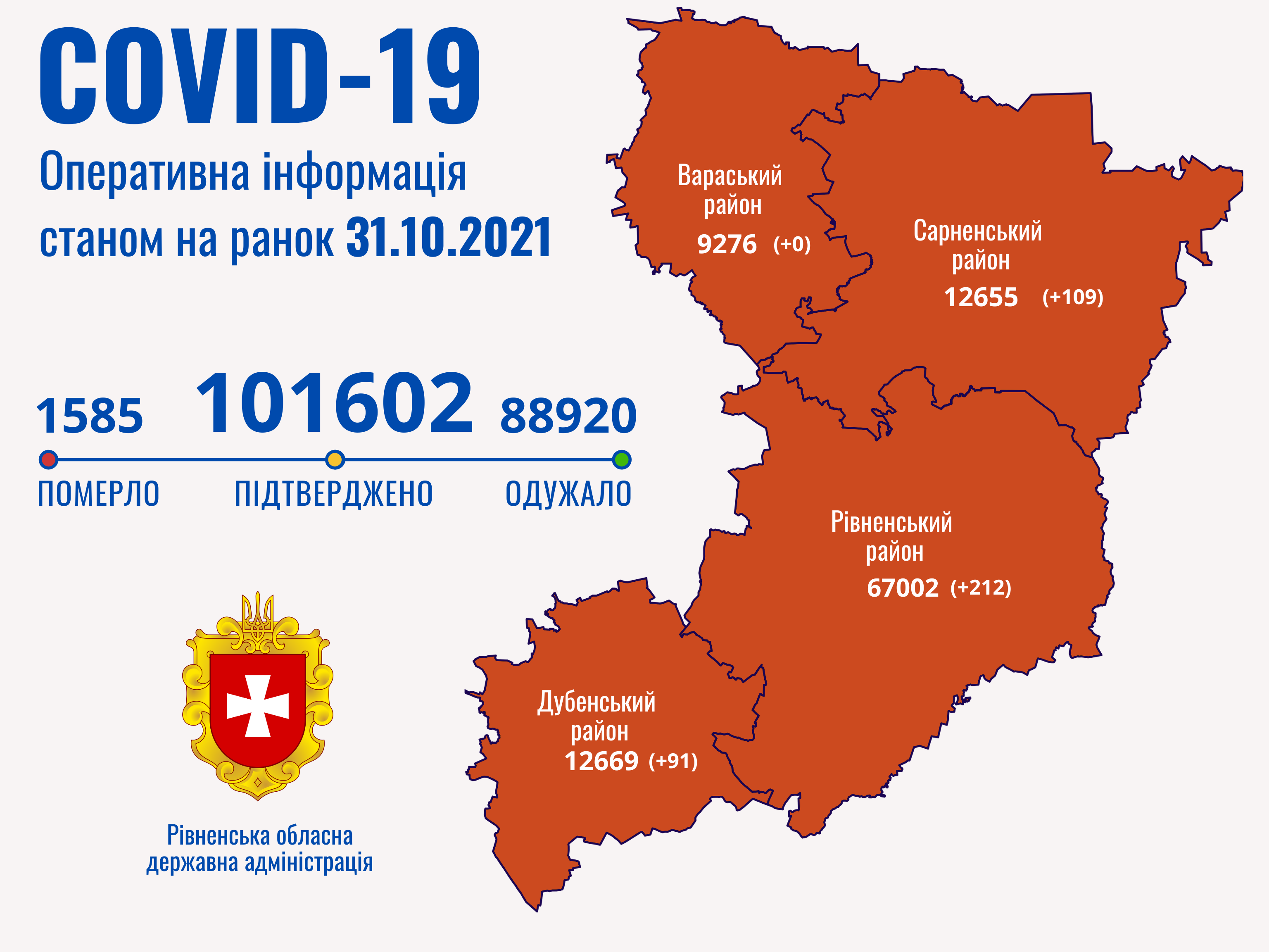 Таким чином в Рівненській області наразі маємо 101602 випадки захворювання на коронавірусну хворобу.