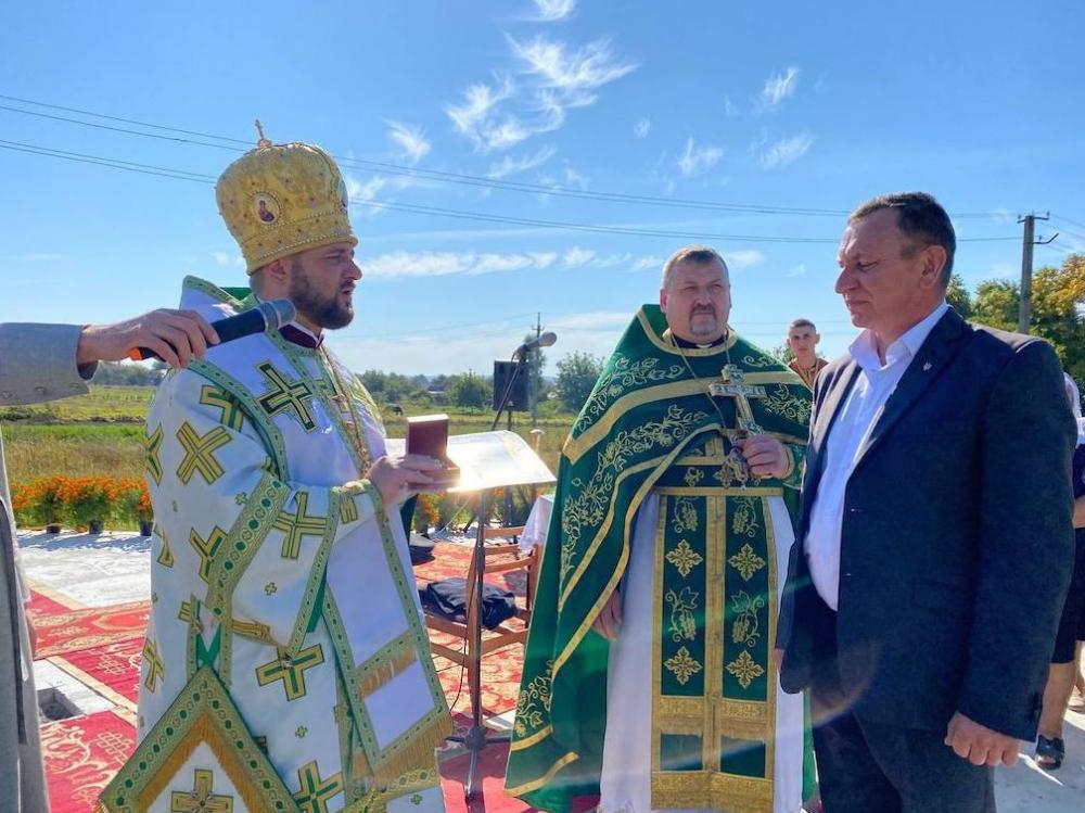 По завершенні літургії владика Іларіон освятив наріжний камінь та заклав пам’ятну капсулу. Також архієрей відзначив голову Привільненської ОТГ Юрія Момотюка та активних парафіян високими церквними відзнаками.