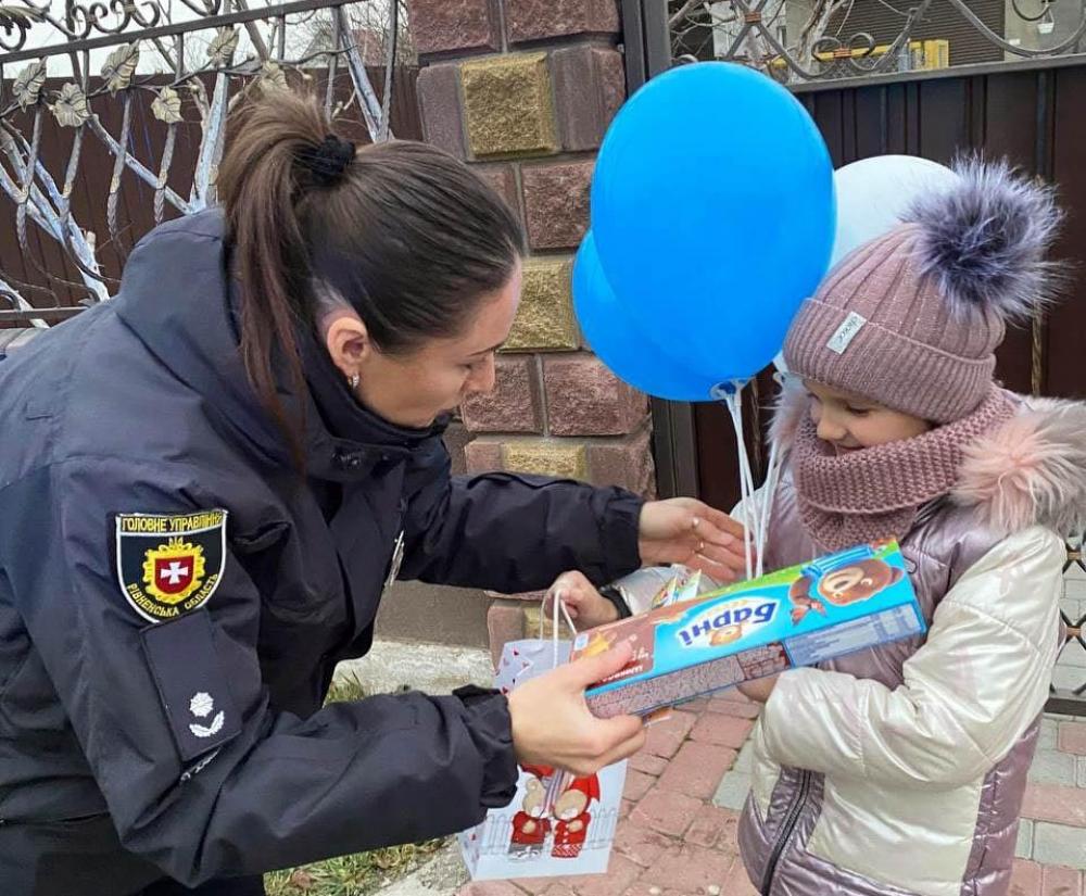 На Рівненщині поліцейські здійснили мрію п’ятирічної дівчинки. Дитина навіть не очікувала, що із дитячого садочка її заберуть поліцейські, покатають на службовому автомобілі, подарують кульки та солодощі.