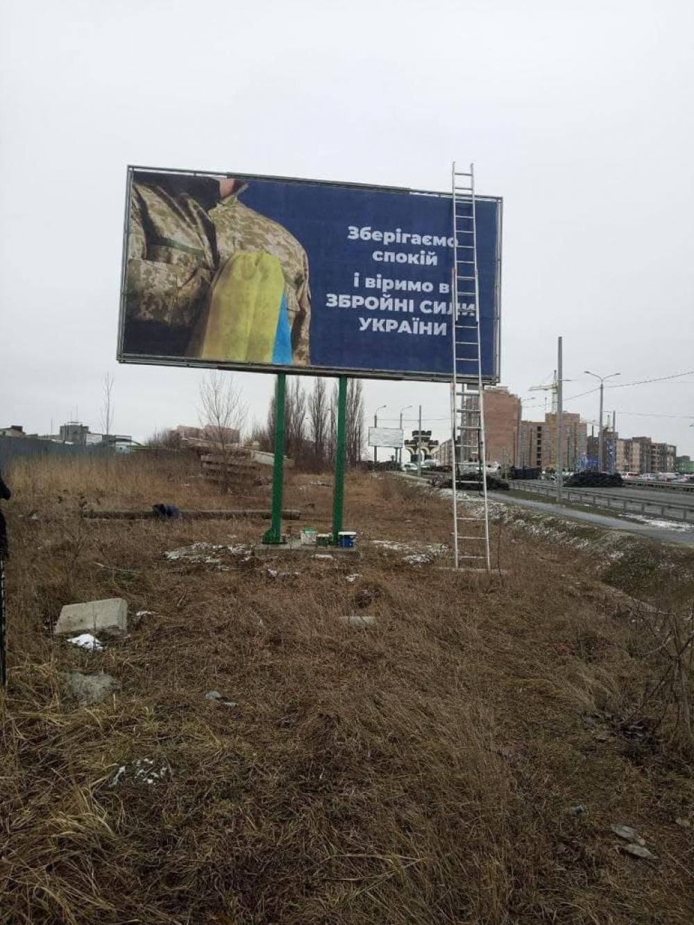 Окрім того у місті встановили мотиваційні борди з надписом "Зберігаємо спокій і віримо в Збройні сили України".
