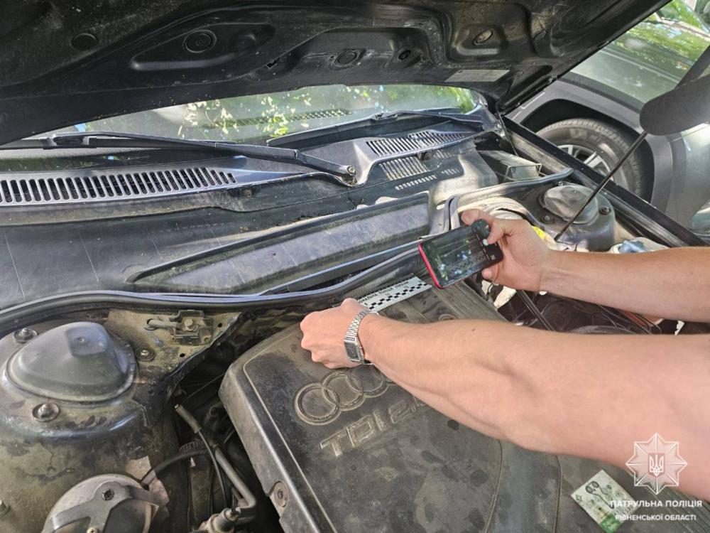 Як повідомили в пресслужбі патрульної поліції Рівненщини, під час перевірки документів та транспортного засобу інспектори виявили, що номери агрегатів мають ознаки підробки.
