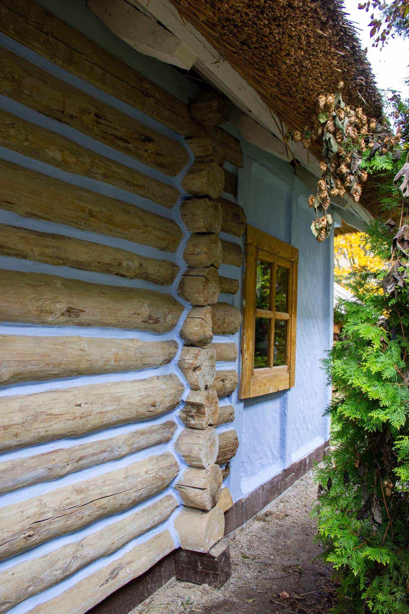 «Спочатку майстри вичистили та вимили бруси. У проміжки поміж брусами позакладали паклю. Це волокно для утеплення хатини. Поверх паклі – майстри нанесли глину. А по глині побілили білим вапном, після того – пофарбували «синькою». Стовбури - обробили речовиною від шкідників та іншого зовнішнього впливу», - розповів керівник Центру дослідження та відродження Волині Володимир Дзьобак.