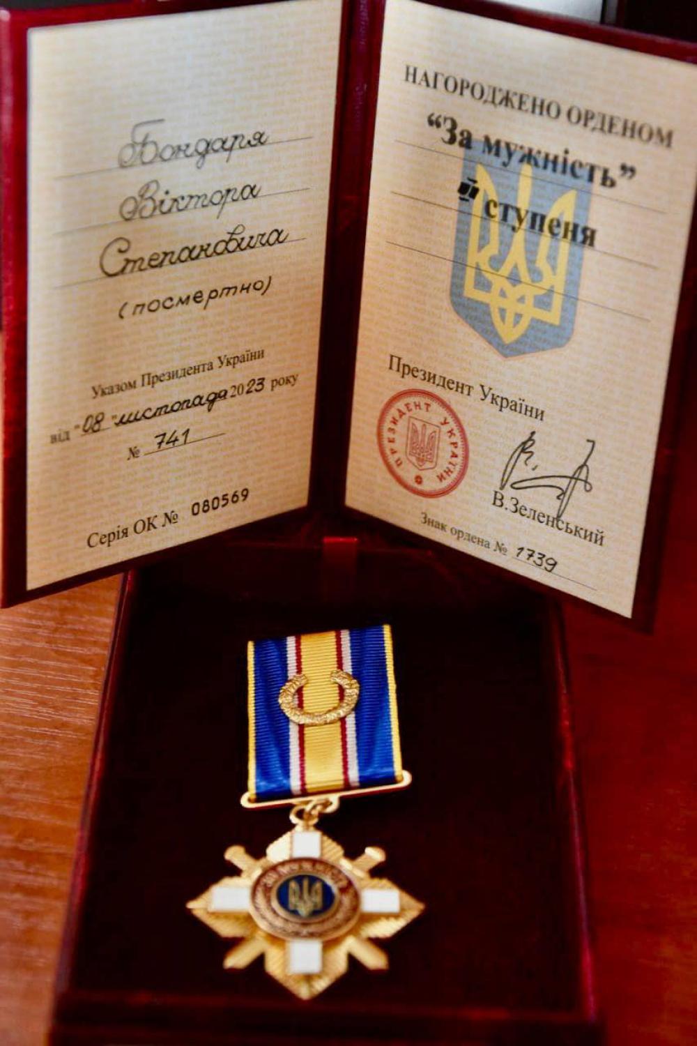 Відтак, орден «За мужність» ІІ ступеня (посмертно) та орденську книжку вручили матері загиблого Віктора Бондаря з Малятина Марії Іванівні.
