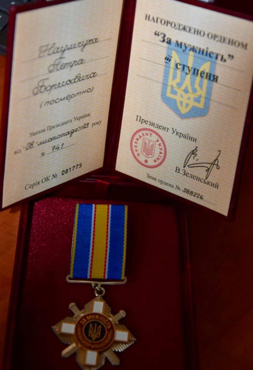Також орден «За мужність» ІІІ ступеня з орденською книжкою вручили родичу Петра Наумчука з Симонова Юрію Старжинському.