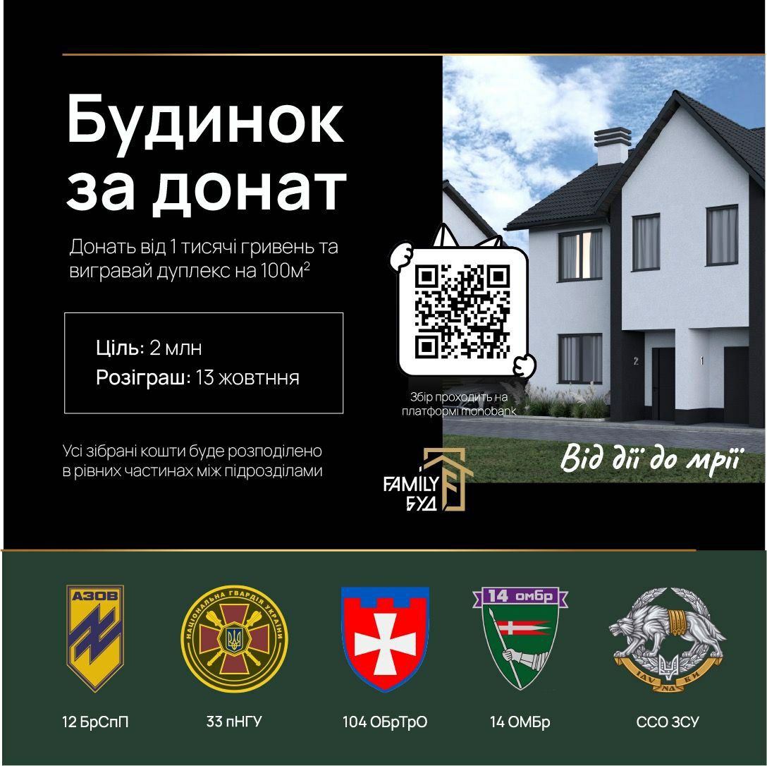 Як зазначається, за донат у 1000 гривень можна виграти будинок-дуплекс площею 100 кв. м.