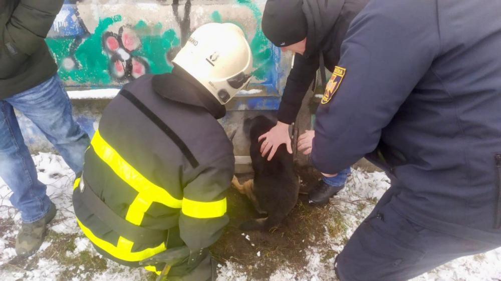 На Рівненщині рятувальники звільнили песика з залізобетонного паркану.