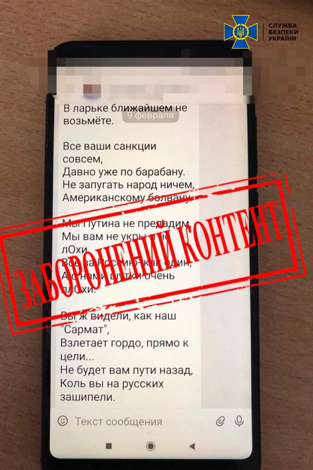 Як встановили слідчі СБУ регіону, зловмисник неодноразово підтримував загарбницьку політику путінського режиму, дискредитував військовослужбовців України, які боронять нашу країну від загарбницьких дій рф, та співчував втратам зс рф.