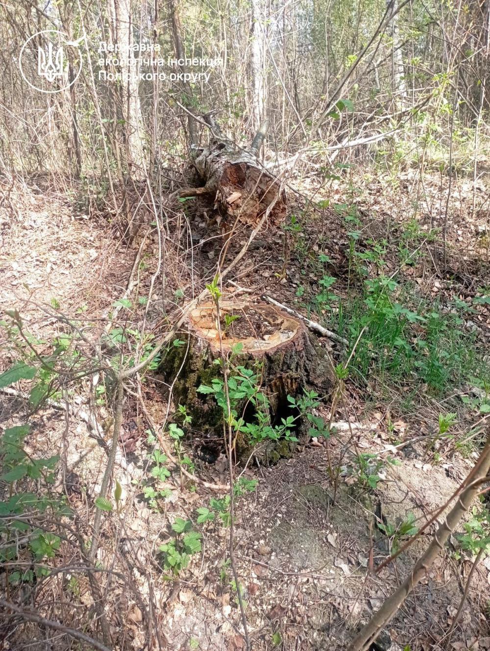 У ході перевірки інспектори виявили факти незаконної вирубки дерев на двох земельних ділянках лісогосподарського призначення:
