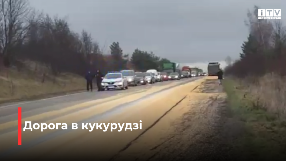 У водія вантажівки на дорогу висипалася кукурудза. На місці працюють правоохоронці. Детальніше — згодом.