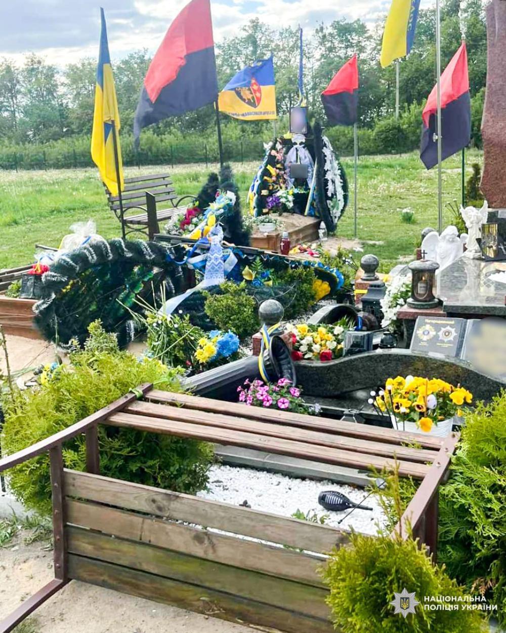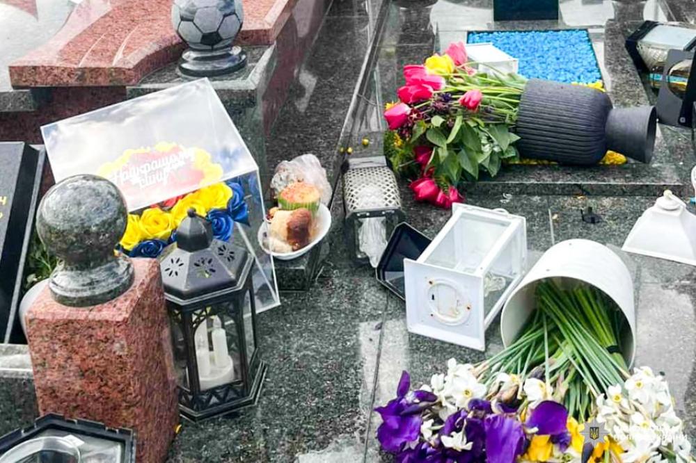 Поліцейські на місці події встановили, що того ж дня у період з 15 по 17:30 години невідомі на могилах трьох військових перевернули квіти та лампадки, а на одній з них ще й пошкодили хрест.
