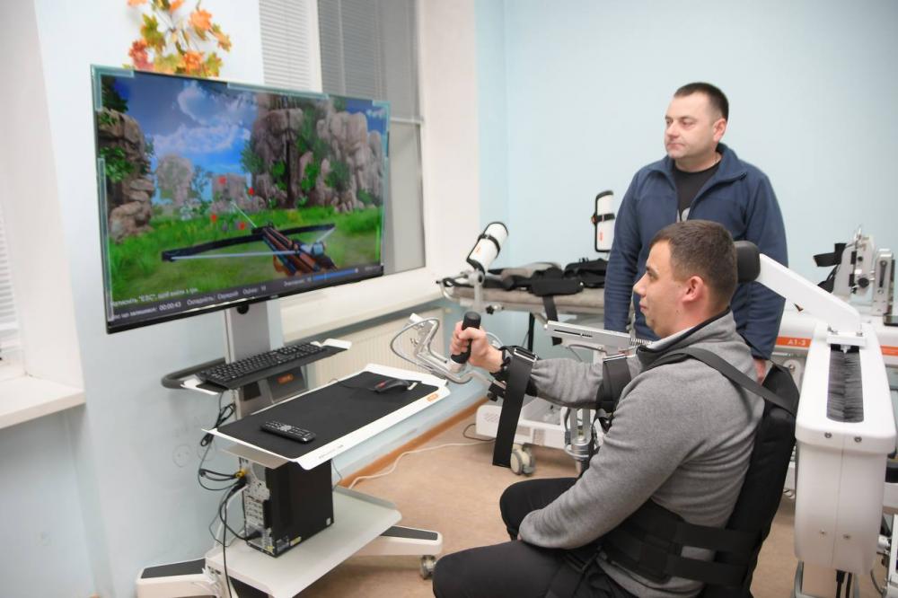 Встановили в Центрі і нове медичне обладнання для роботизованої реабілітації. Це системи для відновлення навичок ходи, розробки нижніх та верхніх кінцівок. Перший такий комплект в Україні придбано за кошти державного бюджету.