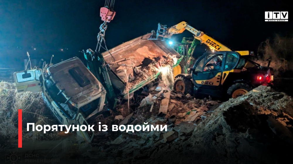 28 лютого о 19:00 до служби “101” надійшло повідомлення про ДТП поблизу с. Богдашів Рівненського району. Водій вантажного автомобіля MAN з’їхав у водойму, після чого машина перекинулася, і дістати водія було неможливо.