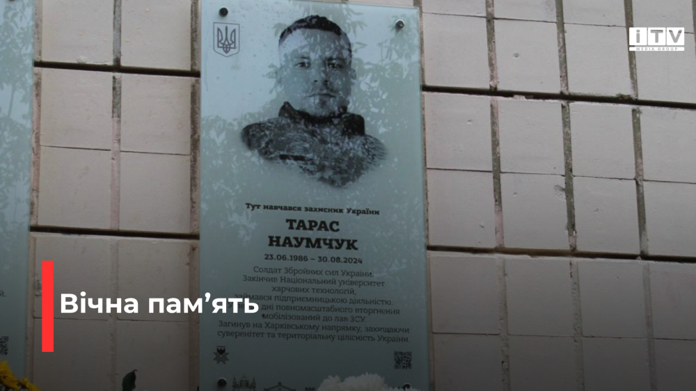 Днями на фасаді Рівненського ліцею №13 встановили меморіальну дошку на честь загиблого захисника України — Тараса Наумчука.