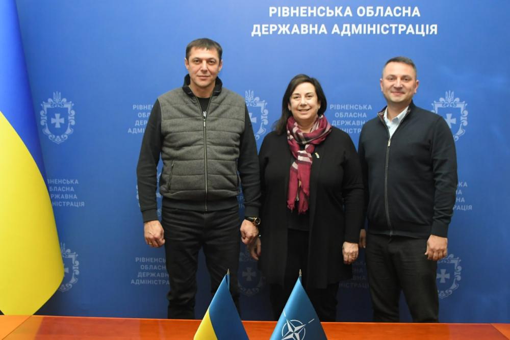 Рівненщину жінка відвідала вперше. Разом із Сергієм Подоліним вони обговорила питання двосторонньої співпраці, програми та проєкти НАТО, а також потреби Рівненської області під час війни.