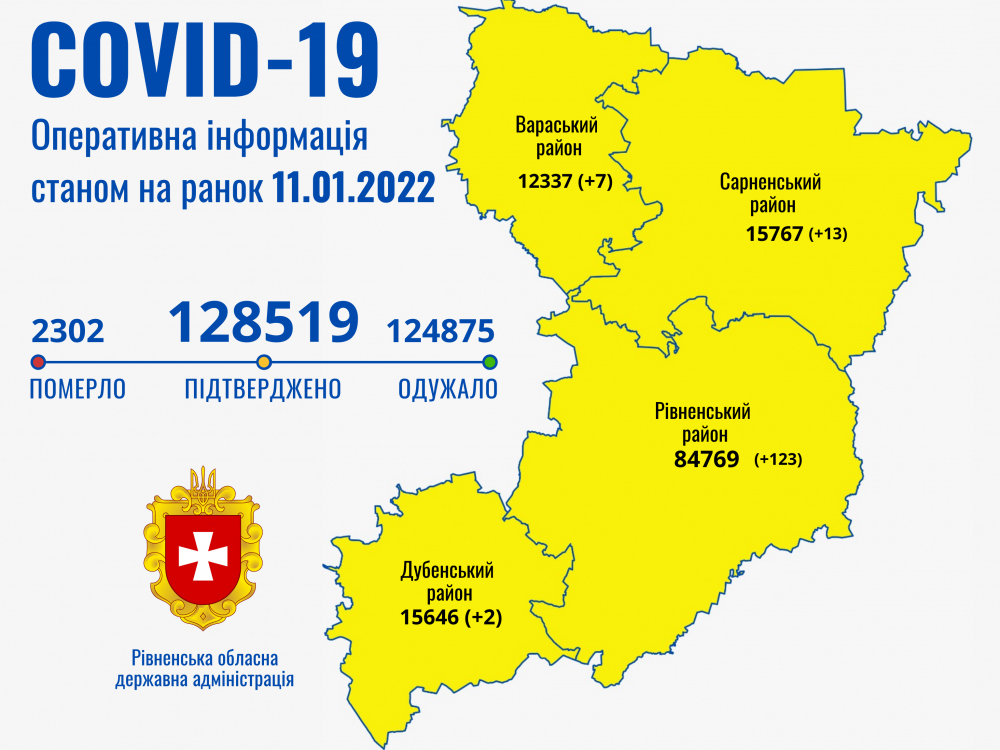За весь час пандемії в області зареєстровано 2302 летальних випадка спричинених COVID-19. Цієї доби померли 64-річний житель м. Острог, 64-річний житель с. Старий Корець, 65-річна жителька с. Жадківка, 77-річна жителька с. Жалин Рівненського району, 39-річний житель м. Рівне.