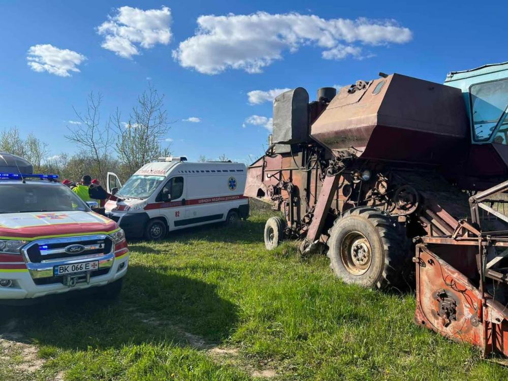 23 квітня на полі поблизу с. Молодаво-2 Дубенського району рятувальники надавали допомогу працівникам поліції та швидкої медичної допомоги по деблокуванню тіла чоловіка.