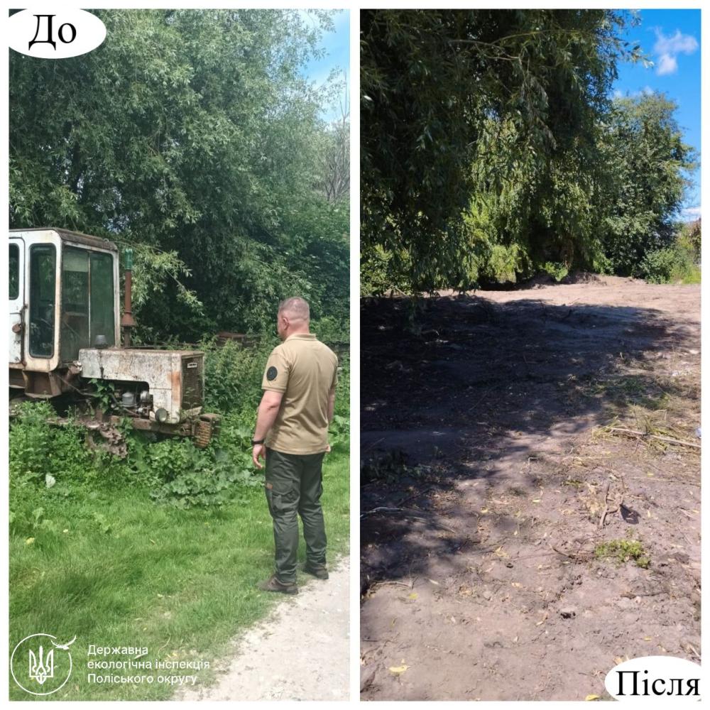 У червні інспектори разом із представниками Корнинської сільської ради виявили розміщення металобрухту та відпрацьованої сільськогосподарської техніки в прибережній захисній смузі річки Устя на землях комунальної власності.