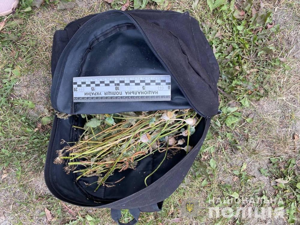 Поліцейські виявили у наплічнику 34-річного жителя села Антонівка головки та стебла маку. Він запевнив, що зрізав нарковмісні рослини на території закинутого нежитлового будинку для власного споживання.