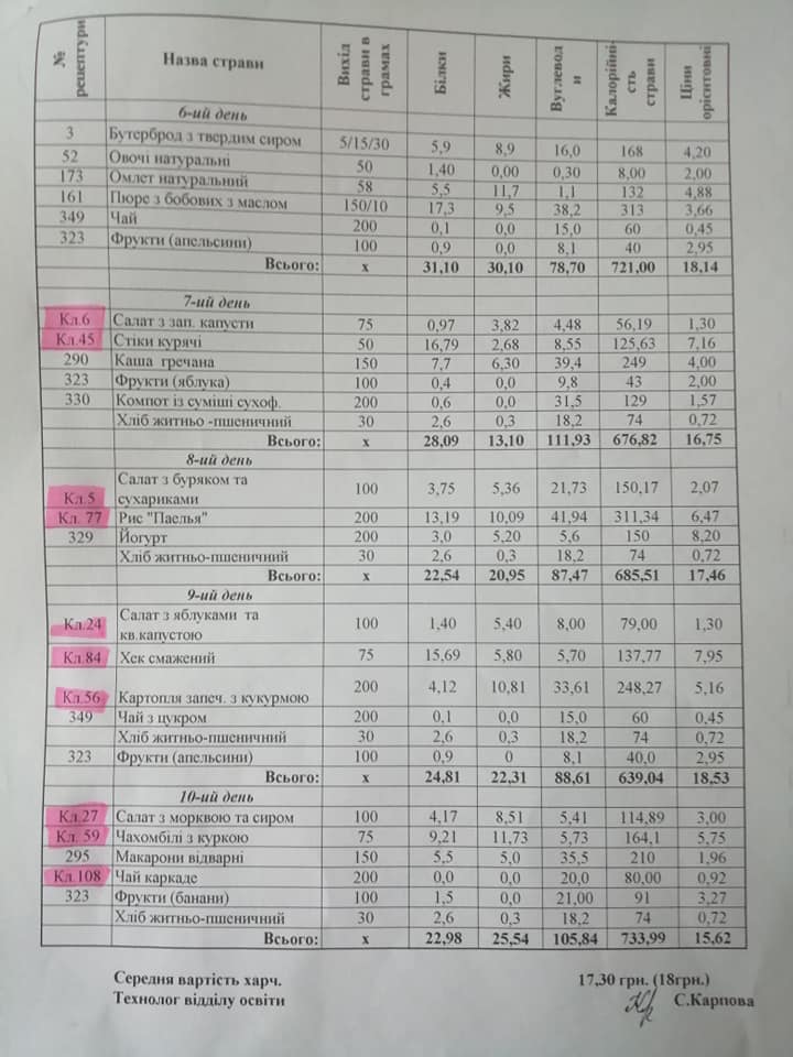 У разі вашої підтримки, цей варіант меню будемо пропонувати до затвердження," - написавначальник відділу освіти, культури, молоді та спорту Шпанівської громади Юрій Шадий.