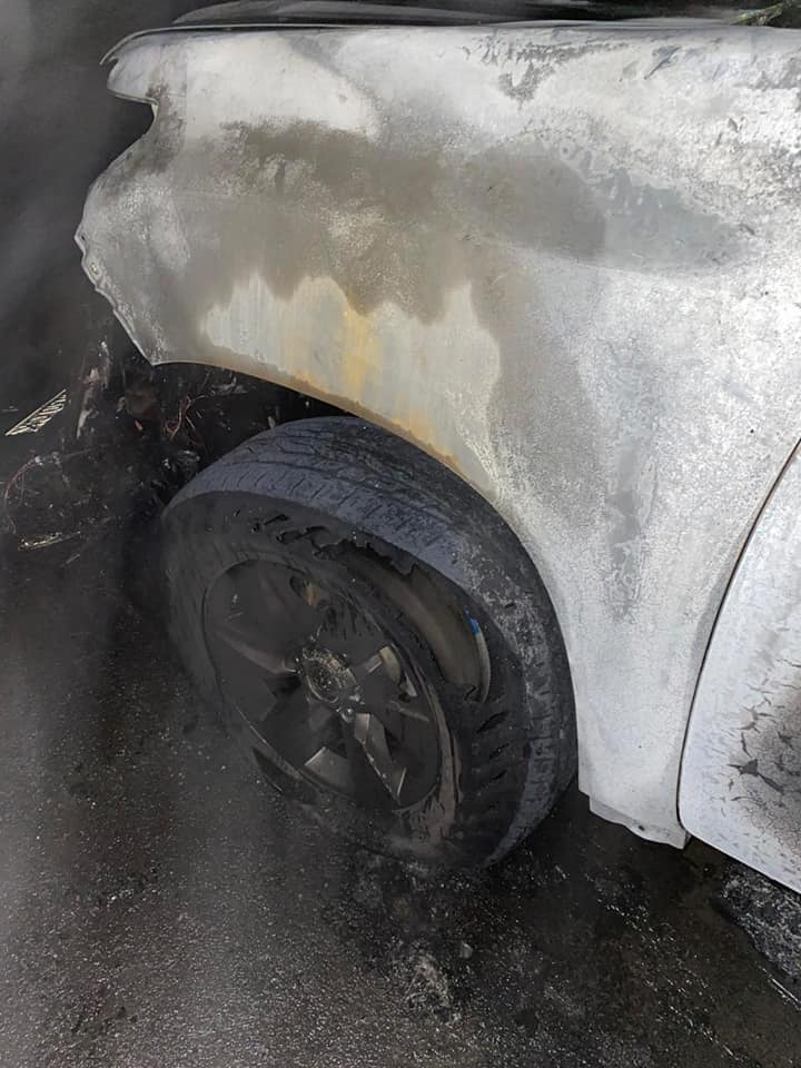 Вогнем пошкоджена передню частину автомобіля. Причина та збитки встановлюються.
