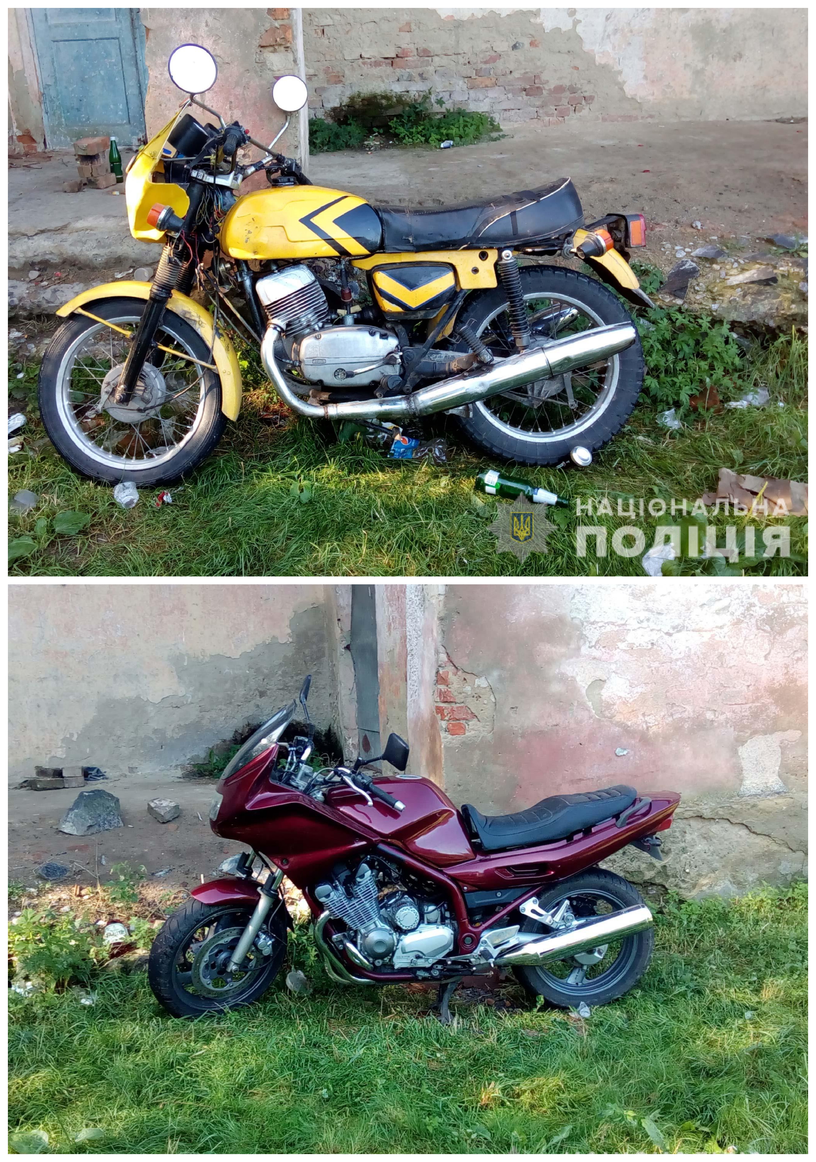 Під час розшукових робіт, викрадені мотоцикли були оперативно виявлені слідчими неподалік оселі заявника, за місцевим магазином. У одному із них була зламана серцевина замка запалювання та відсутні окремі деталі.