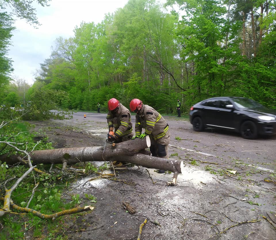Надавали допомогу по розчищенню проїжджої частини дороги від поваленого дерева бійці 8-ї державної пожежно-рятувальної частини міста Сарни.