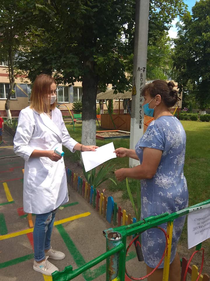Перед входом до садочків проводиться термометрія дітей, батьків до приміщення не допускають. Персонал дошкільних навчальних закладів працює у захисних масках та рукавичках.