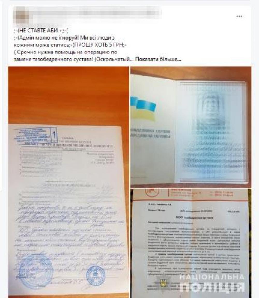 Зловмисник у соціальній мережі створив фейкову сторінку, на якій публікував оголошення про терміновий збір коштів на лікування онкохворих дітей та травмованого чоловіка.