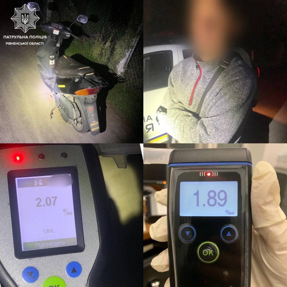 Патрульні встановили, що 41-річний водій позбавлений права керування. Також виявили у нього ознаки алкогольного сп’яніння. Результат огляду на місці зупинки — 2,07‰. Втім, кермувальник захотів пройти огляд в медичному закладі, який також підтвердив стан сп’яніння — 1,89‰.
