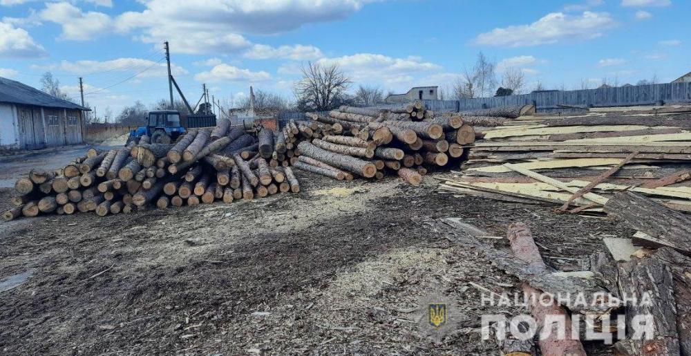 На території пилорами, яка належить 40-річному підприємцю, поліцейські виявили та вилучили майже 60 метрів кубічних лісопродукції — сосни та берези — без маркувальних бірок і документів.