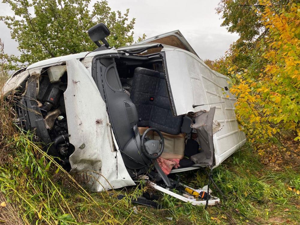 За допомогою спеціального обладнання бійці ДСНС оперативно деблокували з пошкодженого автомобіля Mercedes Sprinter водія та передали працівникам швидкої медичної допомоги.